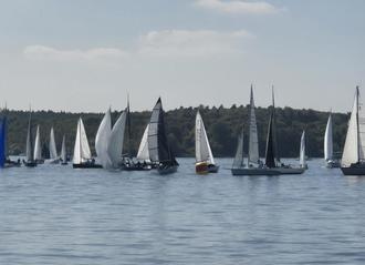 Großes Blaues Band kurz nach dem Start bei wenig Wind. Der Kurs ging auf die Außenmüritz.