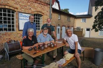 Die Kacheltöpferei am Teschenberg war dank ehrenamtlicher Unterstützung in der Sommersaison zweimal wöchentlich geöffnet. Am 8. September konnte dieses technische Denkmal ebenfalls besichtigt werden. Natürlich wurde den Besuchern der berühmte Rakubrand präsentiert. In Erinnerung an den im Juni verstorbenen Keramikdesigner Franz Poppe wurden dieses Mal neben Wisenten, Eulen und Möwen auch neue Kugeln für den Marktplatzbrunnen gebrannt. Diese werden dann am 11. September feierlich am Neuen Markt übergeben. Beim Rakubrand wird die Keramik bei einer Temperatur von ca. 1000 °C dem Brennofen entnommen und in Sägespäne gebettet. Durch die Reaktion mit den Sägespänen entsteht eine metallisch wirkende Oberfläche. Dr. Reinhold Grewatsch, einer der Ehrenamtler, die ermöglichten, dass die Kachelofenfabrik für Einheimische und Gäste im Sommer zugänglich war, zeigte sich sehr zufrieden mit dem Ergebnis des Tages. „Das heute war wieder eine schöne Veranstaltung. Wir hatten heute rund 160 Gäste zu Besuch. Auch die jetzt beendete Saison 2024 lässt uns zufrieden in die Zukunft blicken. Summa summarum begrüßten wir in unserer Einrichtung rund 600 Gäste, auch sehr viele Besucher aus dem Ausland.“ Und noch etwas ist Reinhold Grewatsch aufgefallen. Zunehmend kommen viele Warener, um sich die Ausstellung in der Alten Kacheltöpferei anzusehen. „Es hat sich wohl herumgesprochen“, schmunzelt der engagierte Mann.