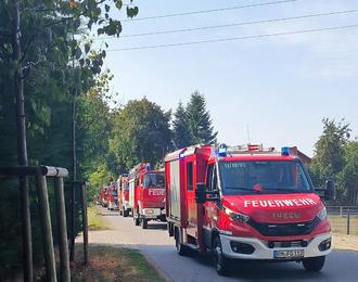 Gotthun (at). Es ist Samstag, 12 Uhr, die Sirene schallt durchs Dorf Gotthun: das wöchentliche Testssignal war an diesem 7. September der Startschuss für einen ganz besonderen Umzug durch das kleine Dorf nahe der Müritz: Der 100. Geburtstag der Freiwilligen Feuerwehr Gotthun. Einsatzfahrzeuge aus den umliegenden Gemeinden hatten sich am Ortseingang versammelt und fuhren entlang der liebevoll und fantasiereich geschmückten Vorgärten Richtung Gotthuner Gutshaus. Achtzehn Feuerwehren aus Minzow, Ludorf, Wredenhagen, Jaebetz, Priborn, Bütow, Sietow, Leizen, Stuer und aus dem eigenen Fuhrpark, teils historischen Ursprungs, machten mit dem Martinshorn lautstark auf sich aufmerksam.