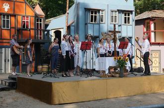 Waren (-lke) Bei strahlendem Sonnenschein feierten am 8. September auch in diesem Jahr die neun christlichen Gemeinden der Stadt Waren einen gemeinsamen Gottesdienst auf der Warener Freilichtbühne unter dem Motto „Singet dem Herrn ein neues Lied“. Trotz der Hitze hatte sich zahlreiche Besucher eingefunden. Die musikalische Umrahmung realisierten zu einem Teil Mitglieder der Internationalen Gemeinde. Des weiteren trug ein ukrainischer Chor, deren Mitglieder hier zeitweise eine neue Heimat gefunden haben, musikalisch zur Gestaltung bei. Immerhin gab es ein Jubiläum zu feiern. Das Gesangbuch, heute aus dem Gottesdienst nicht mehr wegzudenken, wird in diesem Jahr 500 Jahre alt. Luther selbst hatte die Idee, dass die Gemeinde stärker in den Gottesdienst einbezogen werden sollte, immerhin hat er ja selbst auch Kirchenlieder verfasst. Seit dem Erscheinen des ersten Gesangbuches 1524 sind mittlerweile mehr als 8000 verschiedene Ausgaben von Gesangbüchern gedruckt und verbreitet worden. „Singen kommt aus der Seele,“ betonte Anja Lünert in ihrer Predigt. Und auch die Kinder waren aktiv beteiligt mit Basteleien und als es galt, das Brot für die gemeinsame Mahlsfeier auszuteilen. Im Anschluss an den Gottesdienst konnten alle Gäste bei Kaffee und Kuchen in geselligem Beisammensein ins Gespräch kommen. Viele fleißige ehrenamtliche „Bäckerinnen“ aus den einzelnen Gemeinden hatten für leckerste Vielfalt auf den Kuchenbüfetts gesorgt. Die eingesammelten Spenden waren zum größten Teil für die Unterstützung des Chores der Lebenshilfe „Unerhört“ gedacht und zu einem Teil für die Deckung aller Unkosten. Dieser gemeinsame Stadtgottesdienst, der beileibe nicht selbstverständlich ist, hat sich im Leben aller christlichen Gemeinden zu einer schönen Tradition entwickelt, die ganz sicher im nächsten Jahr ihre Fortsetzung findet.