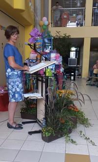 Ein weiteres Highlight: der neue Schultütenbaum - ein großzügiges Geschenk der Firma Eggersmann. Das dunkelblaue Metallobjekt bietet Platz für bis zu 28 Schultüten und verleiht der Einschulung eine festliche und symbolträchtige Bühne. Die liebevoll gestalteten Schätze der Erstklässlerinnen und Erstklässler erhalten damit einen würdevollen Platz im Zentrum der Feier. Ein herzliches Dankeschön geht an die Firma Eggersmann für dieses besondere Geschenk.