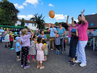 Gäste, Eltern und Kinder genossen im Garten der Villa Kunterbunt, Mirow, das Sommerfest