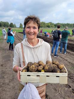 Der Tag startet mit einem traditionellen Höhepunkt: Die alljährliche Kartoffelernte wird mit Arbeitspferden und einem Kartoffelroder, der die Knollen aus dem Boden schleudert, nach althergebrachter Methode demonstriert. Dann heißt es: Alle packen mit an und sammeln die frisch geernteten Kartoffeln ein! Die Ernte kann dann gegen einen Unkostenbeitrag mit nach Hause genommen werden.