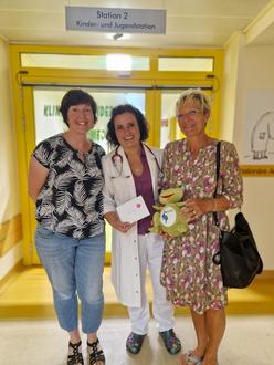 Im Namen der Klasse 4c überreichten Christiane Böhmer, die Elternsprecherin, und Klassenlehrerin Christiane Holtz die großzügige Zuwendung in Höhe von 100 Euro an Dr. Kathrin Kretschmer, Leiterin der Klinik für Kinder- und Jugendmedizin. Das Engagement der Kinder wurde von Kretschmer und ihrem Team mit großer Dankbarkeit und Freude aufgenommen: „Wir waren überwältigt, dass die Kinder an uns gedacht haben und Kindern, denen es nicht so gut geht, helfen möchten.“