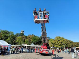 Hoch hinaus mit der Drehleiter der Feuerwehr Röbel, mit der Personen aus einer Höhe von 23 Metern und einem 12-m-Abstand zum Objekt gerettet werden können
