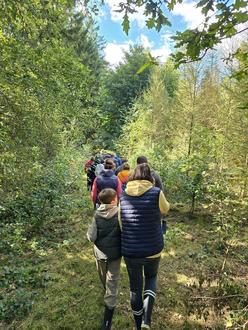 Der Förster hat für die Wanderung einen Rundweg ausgewählt, der etwa zwei Stunden dauert und am Waldhof „Bruchmühle“ beginnt und endet. Auf der Wegstrecke mehrere Stationen eingeplant, wo der Förster sein Wissen an die Gäste weitergibt. An der ersten davon erfährt man, was ein „Waldmantel“ ist – ein rund zwanzig Meter breiter Gürtel aus Büschen und Sträuchern, um den eigentlichen Wald zu schützen. Als die Gruppe unter die Bäume getaucht ist, spricht der Förster mehrfach darüber, wie ein widerstandsfähiger, zukunftsfester Wald aussehen sollte. Ein gesunder Mischwald sei am besten geeignet, mit wettermäßigen und klimatischen Herausforderungen umzugehen.