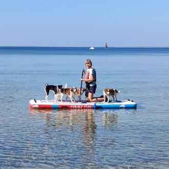 Leiter Frank Leonhardt bedankt sich im Namen der Gruppe bei allen Beteiligten für ihre Gastfreundschaft und Unterstützung, besonders bei der Katamaran- und Surfmühle am Campingplatz C15 für das Erlebnis, mit den Hunden auf dem SUP-Board fahren zu dürfen sowie bei den Müritzfischern und insbesondere bei Fischers Land Boek für die Köstlichkeiten aus den Seen und die sehr freundliche und geduldige Bedienung der großen Gruppe. Weiterer Dank geht an das Kutscher Café in Boek für den kulinarischen Genuss und an den TDG Rechlin und insbesondere dem Personal des Campingplatzes C15 „Bolter Ufer“ für die besten Bedingungen, die dem Hundetreff jedes Jahr geboten werden. Der Allgemeine Hundeverein Kiebitzberg e.V. Waren hat für die Bereitstellung der Parcourselemente für die Hunde gesorgt, danke dafür.