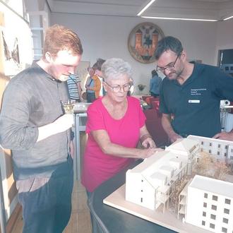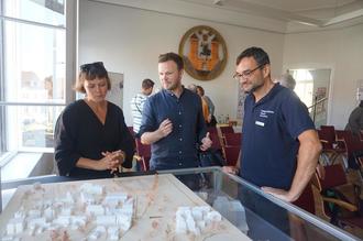 Brigitte Behrendt (Bildmitte) zeigt Philipp Quack (l.i.B.) und Uwe Weiß ihr ehemaliges Zuhause