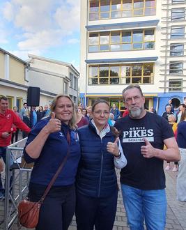 Der Platz vor der Sporthalle am Gotthunskamp in Röbel füllt sich - die Stimmung steigt