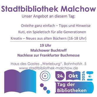 Malchow. Am 24. Oktober ist der Tag der Bibliotheken - jedes Jahr, deutschlandweit, das Angebot der Stadtbibliothek Malchow verspricht einen interessanten Tag: