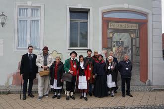 BU Das Team der Stadtführer vor dem Wandgemälde der ehemaligen Posthalterei