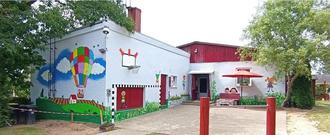 Das Ergebnis kann sich sehen lassen, farbenfroh erstrahlt das Gebäude der Tagesgruppe nun mit tollen Wandbildern. Ein besonderer Hingucker ist der große bunte Heißluftballon im Eingangsbereich.