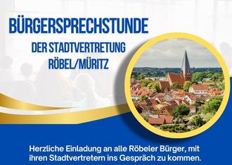 Das Stadtpräsidium und die Mitglieder der Stadtvertretung von Röbel/Müritz heißen Sie, liebe Bürgerinnen und Bürger, herzlich willkommen zu unserer Bürgersprechstunde.