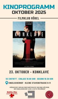 Röbel (at). Am 23. Oktober präsentiert der Filmklub Röbel erneut anspruchsvolles Kino im Engelschen Hof. Gezeigt wird "Konklave“. Ralph Fiennes spielt in diesem Thriller den Kardinal Thomas Lawrence, der sich nach dem unerwarteten Tod des Papstes mit Kardinälen aus aller Welt in Rom versammelt, um ein neues Oberhaupt der Kirche zu wählen. Doch während sich die Türen der Sixtinischen Kapelle schließen, entbrennt hinter den Kulissen ein Kampf um Macht, Einfluss und ein gefährliches Geheimnis, das den Glauben auf die Probe stellt. Einlass 19:00 Uhr, Beginn 19.30 Uhr.