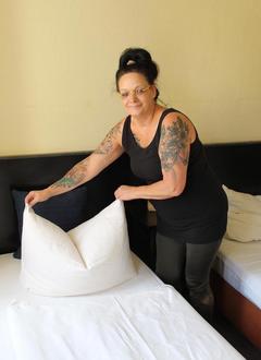 Alles ist gemütlich und sauber eingerichtet. Dafür ist nicht zuletzt Frau Katrin Schriewer verantwortlich, die hier 32 Stunden im Monat im Housekeeping / Roomservice tätig ist. Sie hält die Zimmer sauber, denn Sauberkeit ist das "A und O" im Gästehaus - und die Arbeit macht ihr richtig Freude.