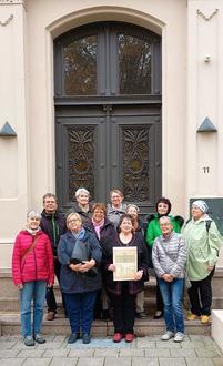 Die „Plattschnacker“ vor dem wunderschönen (leider nie genutzten) Eingangsportal an der Straße