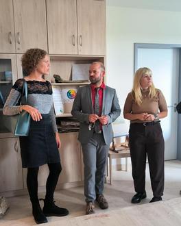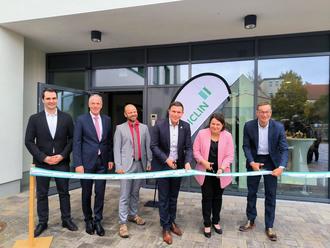 Gemeinsam mit der Ministerin für Soziales, Gesundheit und Sport, Stefanie Drese und Dr. Joachim Ramming, CEO MEDICLIN Aktiengesellschaft, durchschnitt Röbels Bürgermeister Matthias Radtke (Mitte) symbolisch das Band zum Neubau der Kinder- und Jugendpsychatrie
