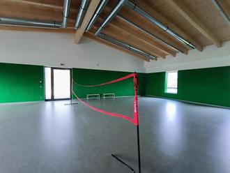 Der in Grün gehaltene Sportraum lädt mit seiner frischen Farbgebung zu Bewegung und Wohlbefinden ein.