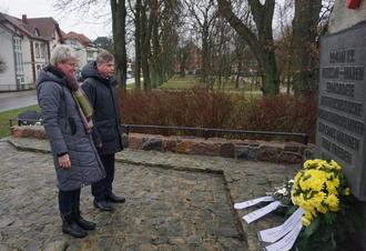 Torsten Koplin und Elke Schoenfelder vom Bund der Antifaschisten während der Kranzniederlegung