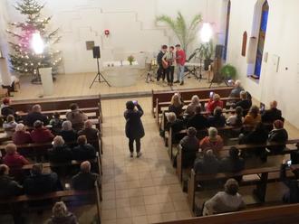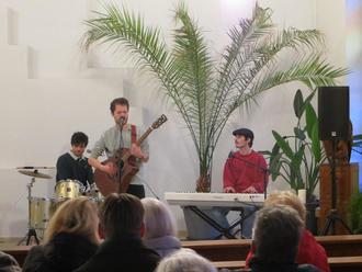 Malchow (bedi). Rund fünfzig Menschen saßen erwartungsvoll in den Bänken der katholischen Kirche in Malchow, als Eckhard Kändler kurz nach 16 Uhr das Wort an sie richtete: „Der Januar ist, wie er ist - oft nicht viel los. Daher freuen wir uns sehr, dass wir heute das erste Konzert hier anbieten können.“ Kändler, der Pastor der evangelisch-lutherischen Kirchengemeinde Malchow, gehört zum Vorstand von „Miteinander in Malchow“, kurz MiM, dem neuen Begegnungszentrum der Inselstadt, das auch die katholische Kirche nutzt. Das „Malchower Tageblatt“ hatte das Neujahrskonzert so angekündigt: „Mit Cello, Gitarre, Gesang, Saxophon und Drums - Sandra Weckert und die Königskinder“. Weckert, Musikerin aus Waren, erläuterte dem Publikum dann, warum es eine Planänderung gab: Eine ihrer jungen Virtuosinnen musste anderswo spielen. Ihr Instrument hätte in der Besetzung gefehlt. Sandra Weckert konnte kurzfristig Ersatz organisieren: Die Warener Band „Good and Bad Times“, kurz GABT, präsentierte ihre selbstgeschriebenen Songs. Die drei jungen Männer, von denen einer für Gesang und Gitarrre, einer fürs Klavier und einer fürs Schlagzeug zuständig war, waren extra von ihrem Studienort Dresden angereist. Sie brachten vor allem deutschsprachige Stücke zu Gehör. „Wir treten zum ersten Mal in Malchow auf und freuen uns, hier zu sein“, kommentierte der Sänger. Als eines der ersten Lieder intonierte die Band „Stille“. Es widmet sich der Schönheit der mecklenburgischen Heimat. Vor drei Jahren gewann die Band damit einen Landesmusikwettbewerb. „Good and Bad Times“ kam beim Publikum immer besonders gut an, wenn die Instrumentalbegleitung die Stimme des Sängers umrahmte, so dass die Texte gut zu hören waren, und nicht zudeckte, wie es leider bei einigen Songs der Fall war.