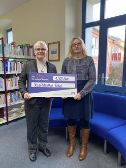 Antje Wasmund, Raiffeisenbank MSE überreichte den Scheck an Eva-Maria Bening von der Stadtbibliothek Röbel