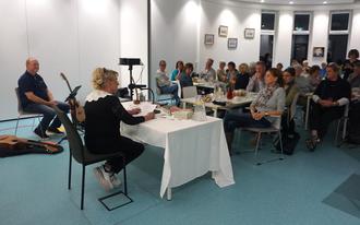 Waren (-lke). Es war der dritte Geburtstag der Müritzer Schreibfedern, der am Dienstag, dem 5. November, im Nachbarschaftstreff Schmetterlingshaus mit einem festlichen Literatur-Café gefeiert wurde. Dagmar Mayer, die Gründerin des Schreibzirkels, kam 2021 aus Erfurt an die Müritz und hatte dort bereits einige Schreibzirkel geleitet. In bewegten Worten dankte sie „ihren Federn“. Das Geburtstags-Literatur-Café startete mit einer PowerPoint-Präsentation zur jungen, aber nichtsdestotrotz bewegten und abwechslungsreichen Geschichte des Zirkels. Dazu gab es neben interessanten Geschichten und Gedichten der Schreibfedern in gewohnter Weise Kaffee, Kuchen, Getränke und die beliebte Bowle. In der Gruppe wirken insgesamt 17 Schreiberinnen und 2 Schreiber und jede und jeder trägt voller Stolz eine silberne Feder als Anstecknadel. Das Multitalent Michael Hausburg schreibt nicht nur, sondern begleitet die Gruppe auch musikalisch bei dem einen oder anderen Event. Und das tat er natürlich auch zur Geburtstagsfeier. Ausnahmsweise startete die erst am frühen Abend und war restlos ausgebucht. Auch ein Buch, „Lebenswege“, existiert bereits und fast alle der 600 gedruckten Exemplare sind verkauft. „Schreibe dein Leben auf, bevor es dir entwischt“, lautet das Motto der „Oberfeder“ Dagmar Mayer. Die Texte werden monatlich in öffentlichen Lesungen/Veranstaltungen einem breit aufgestellten Publikum vorgestellt. Voller Stolz verweist Dagmar Mayer auf den gut gefüllten Terminkalender, der bis weit ins neue Jahr hinein reicht. Und sie freut sich, dass sie im Publikum viele Stammhörer ausmachen konnte. Alle bekamen an diesem Abend neue Prosa und Lyrik, vor allem zum Thema Heimat, vorgestellt. Und auch politische Texte bleiben in diesen unruhigen Zeiten nicht ausgespart. Heiterkeit erregte die Geschichte des Neumitglieds Marion Schild. Sie hatte als ABC-Schützin kurzerhand Pinguine in ihrem Keller erfunden, weil es in ihrer Familie kein Haustier gab. Diese Geschichte wird sicherlich demnächst nach langen Jahren auch auf einem Klassentreffen ein Thema sein. Berührend die Zeilen aus dem Gedicht von Dagmar Mayer: „Wenn ich die Liebe wäre, würde ich klopfen an Fenster und Türen und das Böse zum Guten bekehren.“ Ausschlaggebend für den Erfolg sind sicher auch die Weiterbildungen. So kommt zum nächsten Bildungswochenende im November Dr. Günter Gießler aus Dresden nach Waren. Der Autor und studierte Literaturwissenschaftler arbeitete nach seiner Promotion am Literaturinstitut in Leipzig und im Ausland. Er hat bereits in einigen Bereichen sein Wissen an die Schreibfedern weitergegeben und widmet sich im nächsten Bildungswochenende dem Thema Lyrik.