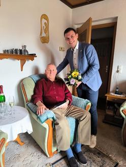 Blumen und Ehrenurkunde für Klaus Zerbel – überreicht von Bürgermeister Radtke