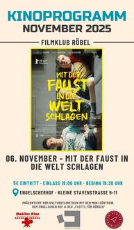 Röbel (at). Am 6. November präsentiert der Filmklub Röbel erneut anspruchsvolles Kino im Engelschen Hof. Gezeigt wird "Mit der Faust in die Welt schlagen“. Zwei Brüder, aufgewachsen im Schatten der Gewalt, suchen ihren Platz in einer Welt, die ihnen keinen bietet. Zwischen Enge, Wut und Sehnsucht erzählt „Mit der Faust in die Welt schlagen“ von einem Aufbruch – roh, ehrlich und intensiv. Ein Film über Herkunft, Widerstand und die Kraft, eigene Wege zu gehen.