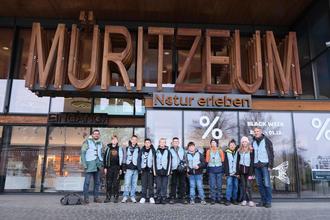 Punkt zehn Uhr öffnete das Müritzeum und die Schülerinnenn und Schüler wurden von Frau Müller, einer der Museumspädagogen, herzlich in Empfang genommen. Zunächst wurden die Mädchen und Jungen durch das Aquarium geführt. Start war wie jedes Jahr das riesige Maränenbecken, das sich über zwei Etagen erstreckt und dessen Scheiben so breit wie ein A4-Blatt sind, um die enormen Wassermassen im Becken zu halten.