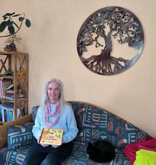 Birgit Stoffregen hält voller Freude das vorläufige Cover ihres bald erscheinenden ersten Kinderbuchs in den Händen