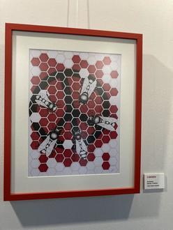 Mit dieser Ausstellung erfüllt sich ein langgehegter Traum für Katrin Harder. Eltern und Familie unterstützten und sponserten die einjährigen Vorbereitungen. Bis ins Detail geplant und durchdacht, seien es die schwarzen und roten Zugvögel, die dekorativ neben den Rahmen zu finden sind, von der Künstlerin entworfen und zusammen mit ihrem Mann auf Holz gebracht. Oder die Rahmen, die es so nicht zu erwerben gab und mit etwas Geschick in Farbe und Form individuell mit separat gekauftem mattem Museumsglas angepasst wurden.