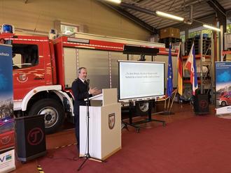 Neuer Schulleiter Johannes Schuldt, bis September stellvertretender Schulleiter und Brandoberrat, visionierte in seiner Rede neben der ständigen Steigerung der Kompetenzen auch das räumliche Wachstum. Das Ausbildungsgelände soll erweitert werden, um Szenarien authentisch darzustellen, die Fahrzeughalle wird vergrößert, so dass bisher ausgelagerte Fahrzeuge den Bestand vor Ort komplettieren. Aber auch die digitale Welt soll mit VR- und Simulationsräumen erlebbarer werden. Denn die Lehrgangszahlen beweisen, dass der Standort Malchow zu einer etablierten Lehrstätte gewachsen ist und weiterwachsen kann.