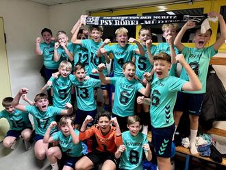 Röbel (at). Stolz recken die Jungs vom PSV ihre Hände in die Höhe: Die Freude der D-Junioren vom PSV Röbel ist groß, mit dem ersten Platz der Herbstmeister hat es das Team in die Platinstaffel geschafft. Am 23. November siegten sie über den Malchower SV mit 8:3 und erreichten am Ende der Hinrunde 6 Punkte Vorsprung - alle Spiele waren gewonnen.