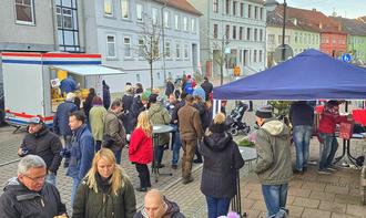Malchow (bedi). Das spätnovemberliche Schmuddelwetter machte pünktlich zum ersten Adventswochenende Platz für Sonne und Kälte: Tagsüber am 30. November und am 1. Dezember strahlte Helios vom Firmament, wie man so schön sagt, nach Einbruch der Dunkelheit wurde es frisch und morgens hatte der Reif eine dünne weiße Decke mit Ornamenten auf Dächer und Wiesen gezaubert. Gute Bedingungen für den Malchower Adventsmarkt auf dem Neuen Markt und in der „Werleburg“, der am Samstag und Sonntag stattfand, und die Weihnachtsstraße am Samstag auf der Güstrower Straße plus einem Teil der Kirchenstraße bis zum Stadthafen. Die beiden Veranstaltungen wurden vom Kultur-und Sportring Malchow (KSR) e. V. gemeinsam mit Malchower Gewerbetreibenden organisiert. Bürgermeister René Putzar eröffnete sie am 30. November um 14 Uhr auf dem Neuen Markt. Neben dem Treiben dort und auf der Weihnachtsstraße, wo auch der Weihnachtsmann öfter gesichtet wurde, gab es wie jedes Jahr auch ein abwechslungsreiches Programm in der „Werleburg“: ein kleiner Kunsthandwerkermarkt, wo man zum Beispiel Schmuck, Gestricktes oder Dekogegenstände kaufen konnte, und Auftritte auf der Bühne. Dort waren unter anderem die Laiendarsteller der Malchower Dilettanten-Bühne mit ihrem Weihnachtsmärchen, die Malchower Cheerleader und eine kleine Gruppe der TanzOase Malchow zu sehen. Letztere - fünf Frauen in farbigen, glitzernden Tanzkostümen - boten eine Auswahl der orientalischen Tänze ihres Repertoires und sogar eine Adaption eines Weihnachtsliedes dar.