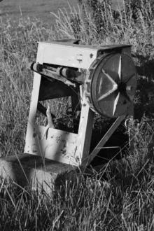 Das alte Kurbelwerk einer Schranke, die seinerzeit handbetrieben wurde durch den "Iesenbahnbomupundaldreiher"
