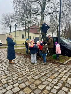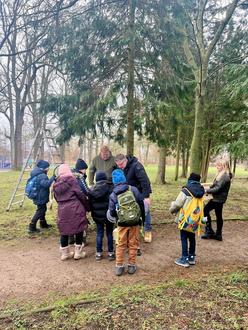 In der ersten Winterferienwoche trafen sich neun CDU-Mitglieder mit rund 50 Hortkindern aus den Horten „Dat Röwelsche Görnhus“ und „AWO Gotthunskamp“ sowie ihren Erzieherinnen auf dem Elefantenspielplatz, um 30 Nistkästen anzubringen. Diese Brutkästen wurden in den vergangenen Herbstferien im Rahmen eines Projekts zusammen mit den Kindern gebaut und anschließend von ihnen bemalt. Nun war der große Tag gekommen, um einen idealen Platz für die Nisthilfen zu finden.