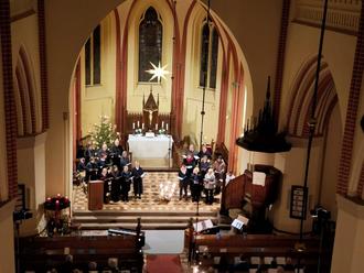 Mitglieder des Kantatenchores singen in der Christvesper am Heiligen Abend 2022 in der Georgenkirche.