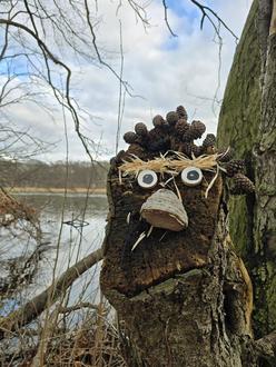 Zislow (bedi). Um den Pätschsee bei Zislow zu wandern, bietet zu jeder Jahreszeit Abwechslung: Ins Wasser gefallene alte Bäume gleichen Krokodilen, daneben gleiten Schwäne, fliegen Enten auf, lassen sich Blesshühner von den Wellen schaukeln. Doch die Natur bekommt nach dem Schwarz, Weiß und Graubraun der Vögel noch Farbtupfer: Von einer freiliegenden Wurzel schaut ein Gesicht - mit Augen, einem roten Bart und blauen Haaren. Das ist einer der rund 180 Baumgeister, die Uschi Janke seit 2017 auf dem Rundweg von Zislow um den See und zurück geschaffen hat. Das läuft meistens so: „Ich finde im Wald eine interessante Wurzel, schleppe sie nach Hause, besprühe sie mit Acrylfarbe und gestalte ihr Gesicht mit Naturmaterialien weiter. Dann bringe ich sie mit meinem Wägelchen zum Pfad und befestige sie an einem passenden Platz“, erzählt die Hobbykünstlerin. „Sehen, einsammeln, hinstellen“, ist ihr Motto. Der „Baumgeisterpfad“ beginnt am Heimathaus in Zislow, führt zum Pätschsee, ein Stück um diesen herum, über den Campingplatz und endet wieder in Zislow. Er ist rund sechs Kilometer lang und an den Schildern mit den Baumgeistern zu erkennen. Beim Heimathaus liegen auch Flyer dazu aus.