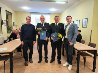 Eine besondere Würdigung erhielten Klaus Gödicke (stellv. Gemeindewehrführer) und Andreas Wilfert (Gemeindewehrführer), die zu Ehrenbeamten ernannt wurden.