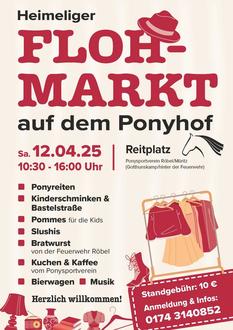 Röbel (at). Der Ponysportverein lädt am Samstag, den 12. April, von 10:30 bis 16:00 Uhr zu einem unvergesslichen Flohmarkt ein!