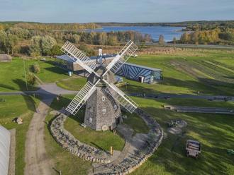 Von weitem grüßt die Holländer Windmühle auf dem Freigelände Alt Schwerin