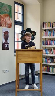 Vincent Severin aus der Grundschule Altenhof gab den Auftakt mit einer Geschichte der "Drei ???"