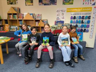 Schülerinnen und Schüler der 2. Klasse aus den Grundschulen des Amtsbereiches Röbels mit ihren Lieblingsbüchern