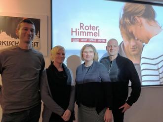 v.l.n.r.: Paul Ronnecker (Flotte für Bürger), Franziska Stracke (Engelscher Hof), Riana Radbruch und Dirk Müller (Kulturstammtisch Röbel) - das Team freut sich über das rege Interesse am Kino in Röbel