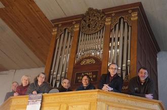 Zufrieden schauen Initiatoren und Kirchengemeinderatsmitglieder von der Orgelempore der 1851 erbauten Wolfsstellerorgel in Varchentin