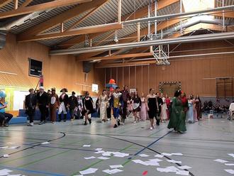 Röbel (at). Bereits auf dem Parkplatz des Schulcampus Röbel zeichnen verdächtige Spuren am 18. April den Landstrich: Heuballen, Absperrungen - ist hier gar ein Aufstand der Bürgerlichen geplant? Hinzu kommen mystische Töne aus den Gemäuern der Turnhalle - die „Abistokraten“ der 12. Klassen der Schule am Gotthunskamp von Röbel haben aufgefahren: Den zwei Königreichen um Frau Wagner und Herrn Dittrich, die jeweiligen Klassenlehrer der Abi-Klassen, steht ein „bitterer“ Kampf bevor oder besser ein Fest mit sportlich kämpferischen Spielen. Sei es das Pferderennen mit Schüler-Lehrer-Mannschaften, der ganz spezielle Wissenstest oder die Rezitation des Erlkönigs als Rap-Battle, vorgetragen von den ahnungslosen Deutschlehrerinnen. Mit einer einzigartigen Performance rappten die Lehrerinnen Goethes Erlkönig, dass dieser nun mindestens jedem folgenden Jahrgang im Gedächtnis bleiben wird. „Der Adel bittet zum Tanz“, so das Motto der diesjährigen Abi-Klasse, die in fürstlichen Gewändern und edlem Tüll auf die Bühne trat und gemeinsam mit dem Volk, den Jägern, Rittern, Bediensteten und Harlekinen zu aktuellen Beats die mit Schulheften, Goldkonfetti und Luftballons übersäte Turnhalle rockten.