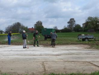 Die Arbeitseinsätze des Dorfvereins haben Tradition. Am 13. April hat man sich bereits zum achten Mal zu diesem Zweck getroffen. „Wir haben auch schon am Spielplatz oder am Gutshaus gearbeitet, Straßenränder gesäubert und begradigt oder Müll gesammelt“, sagt Vereinsmitglied Kerstin Tönnessen. Heute freuen sich die Aktiven besonders über die Unterstützung eines Treckerfahrers aus der Nachbarschaft, der mit seiner Maschine die gröberen Arbeiten erledigt hat.
