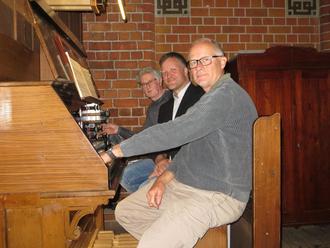 Die drei Herren an der Orgel v. l. n. r.: Hans Vogel, Martin Hebert, Hartmut Lüker.