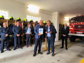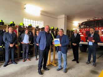 Schwarz (at). Dass die Mühlen in den Ministerien schnell mahlen können, bewies die Übergabe der Fördermittelbescheide für zwei Löschfahrzeuge am Mittwoch nach Ostern in der Gemeinde Schwarz. Für die kleine Gemeinde im äußersten Süden des Landkreises Mecklenburgische Seenplatte war es ein großer Tag – nicht nur wegen des hohen Besuches aus dem Ministerium, sondern auch wegen des bedeutungsschweren Umschlags, den Christian Pegel, Minister für Inneres, Bau und Digitalisierung des Landes M-V dabei hatte.