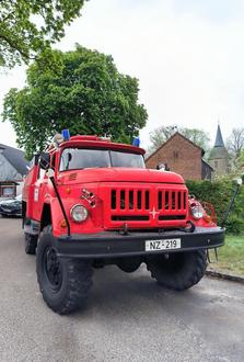 Eine besondere Nostalgie-Vorführung gab es mit dem ZIL, ein für Militäreinsätze in der damaligen Sowjetunion gebautes dreiachsiges Tanklöschfahrzeug mit ordentlich Hubraum (6-l-Maschine) und einem nicht mehr ganz zeitgemäßen Verbrauch von 1 l auf 1 km. Mit den technischen Details durfte sich Christian Pegel persönlich vertraut machen.